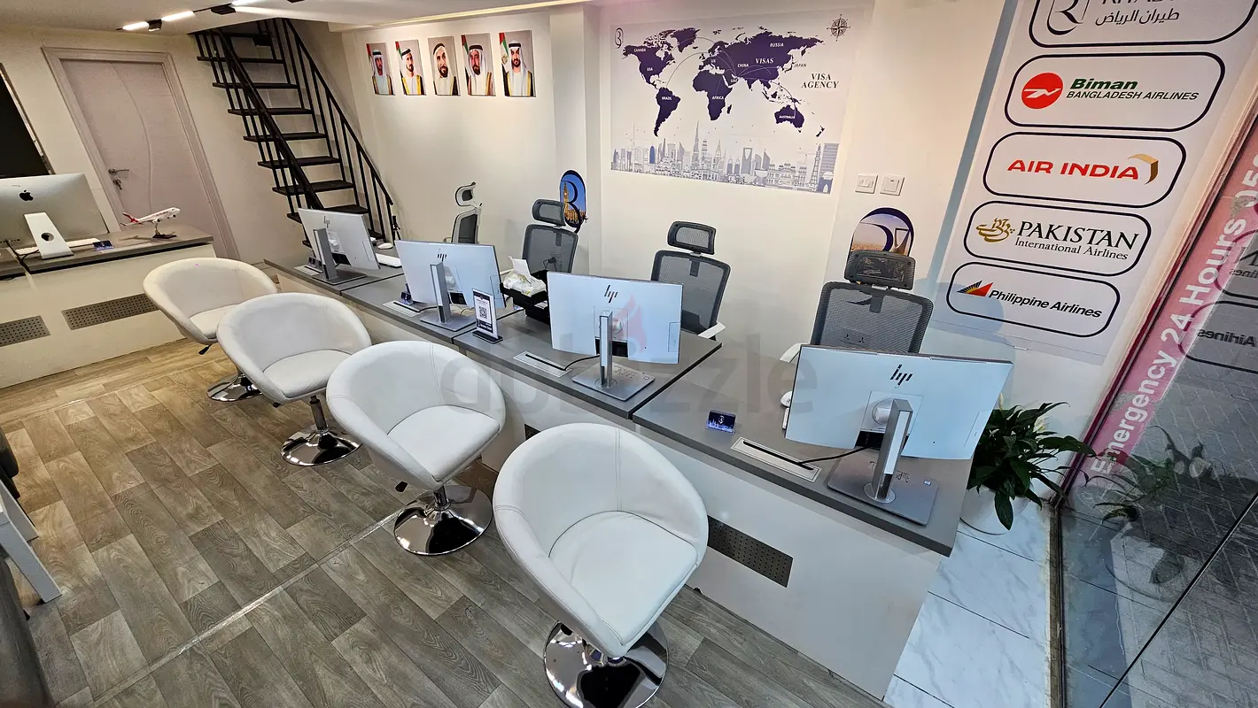 I'm selling the commercial office space currently used as Omer Bakarman Tourism travel agency. The unit is in excellent condition with normal daily usage and is being offered for sale or lease. The shop features a full glass frontage with illuminated signage, open-plan layout with multiple workstations, a reception desk, and a small meeting area. Interior is clean and well maintained with tiled flooring, ceiling lighting, air conditioning, and built-in shelving. Suitable for travel agency, retail office, or service business. Available immediately.