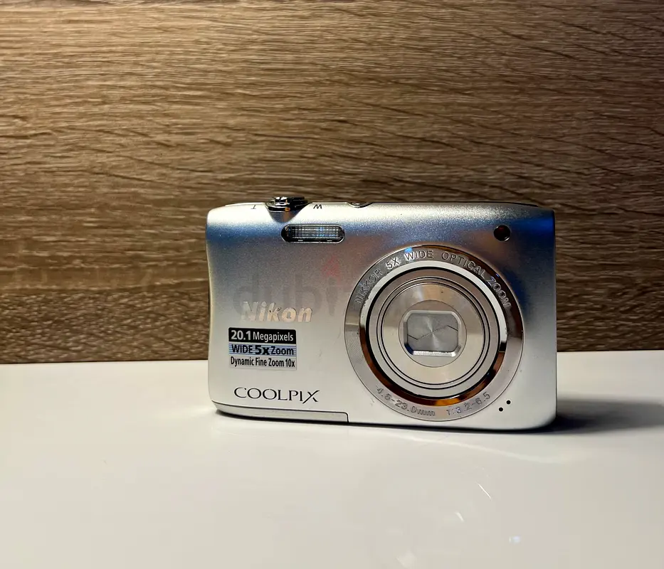 I'm selling my Nikon COOLPIX compact point-and-shoot camera in silver. It's about 1-2 years old and has been used lightly, currently in good condition with only minor signs of normal use. The camera is fully functional — the lens, buttons and display work fine and the images are clear. It has 20.1 megapixels and a 5x optical zoom as shown on the front. No warranty applies.