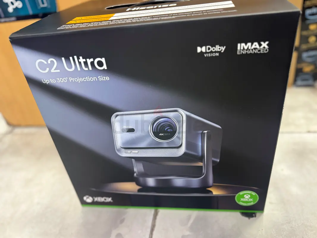 Hisense C2 Ultra 4K UHD Triple Color RGB Laser Portable Mini Projector, 65”~300", 3000 ANSI Lumens, 110% BT.2020 Wide Color Gamut, Dolby Vision, Sound by JBL, Netflix, WIFI
