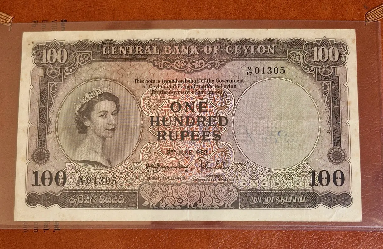 Ceylon 1952 100 Rupees Banknote