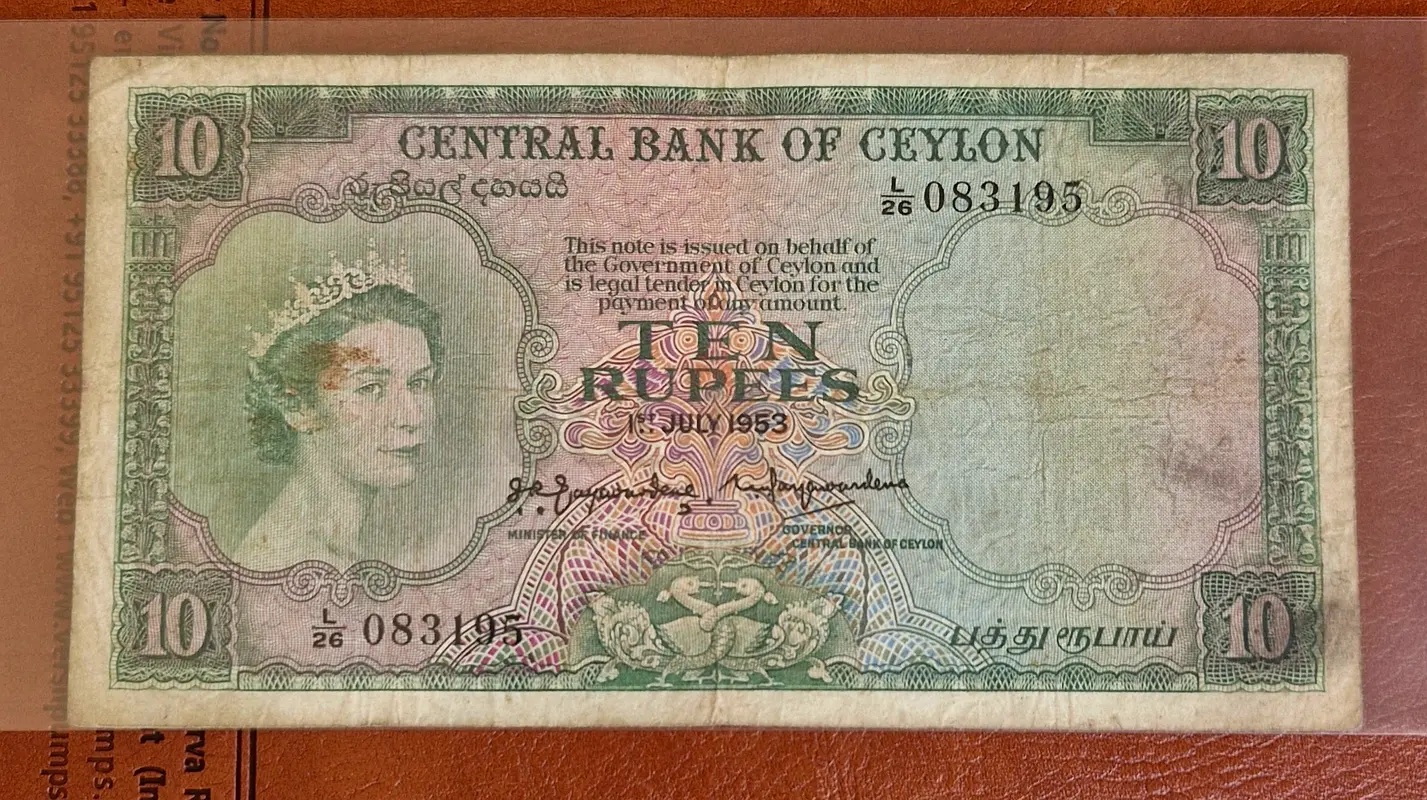 Ceylon 1953 10 Rupees Banknote