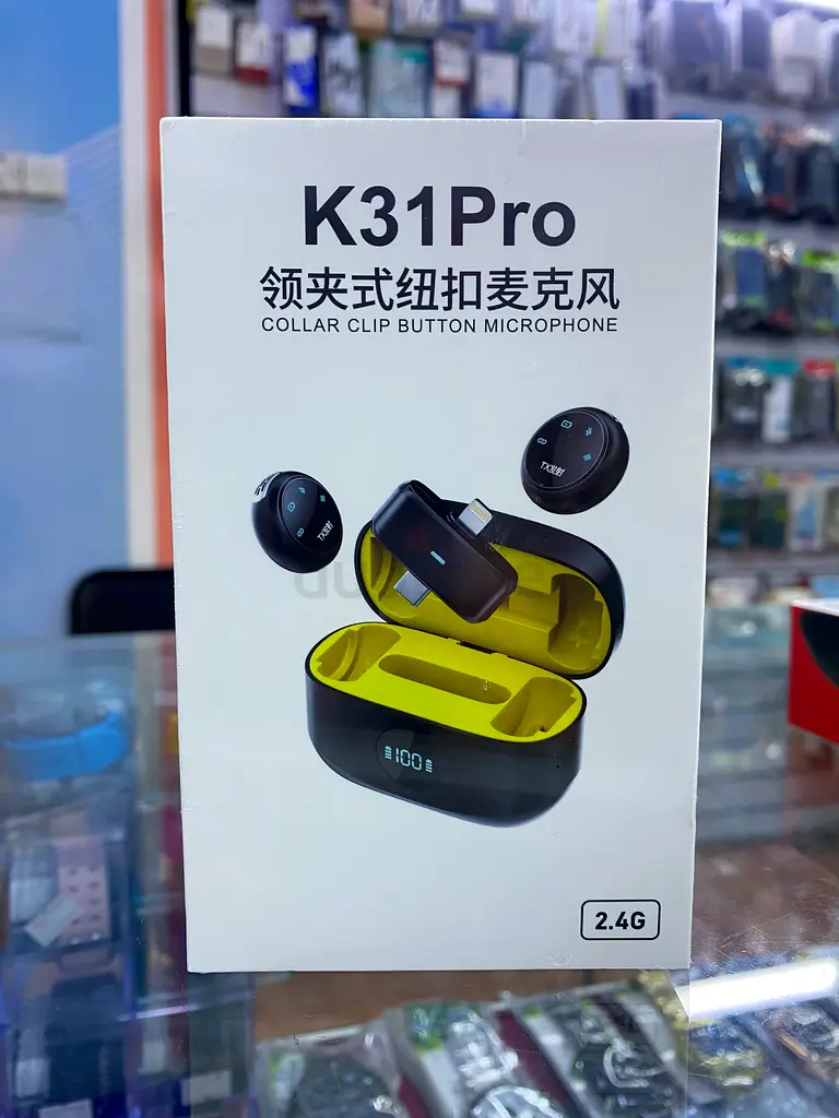I'm selling a brand new K31 Pro Wireless Microphone Set. This set features a clip-on design for convenient use, making it perfect for interviews, videos, or presentations. It offers crisp audio quality and operates on a 2.4 GHz frequency. The package includes the main receiver and transmitter for easy setup. If you're looking for an affordable solution for wireless audio, this is a good option.