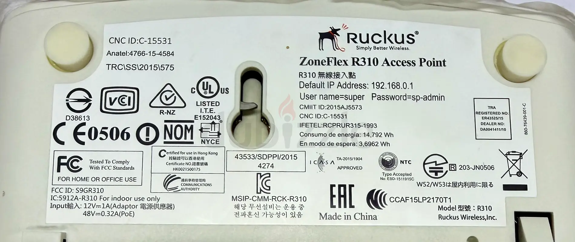 - Model: Ruckus ZoneFlex R310