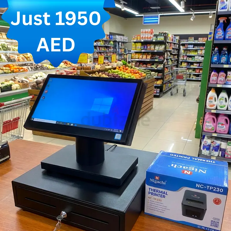 Hp engage aio i5 7th gen 8gb ram 128gb ssd 14" touch system less used + New Printer + New Cash drawer + + Any offline billing software with this package Restaurant Pizza Shop Roastery Supermarket Grocery Cafe Salon Laundry Pharmacy Clinic Tailor Shop Pet Shop