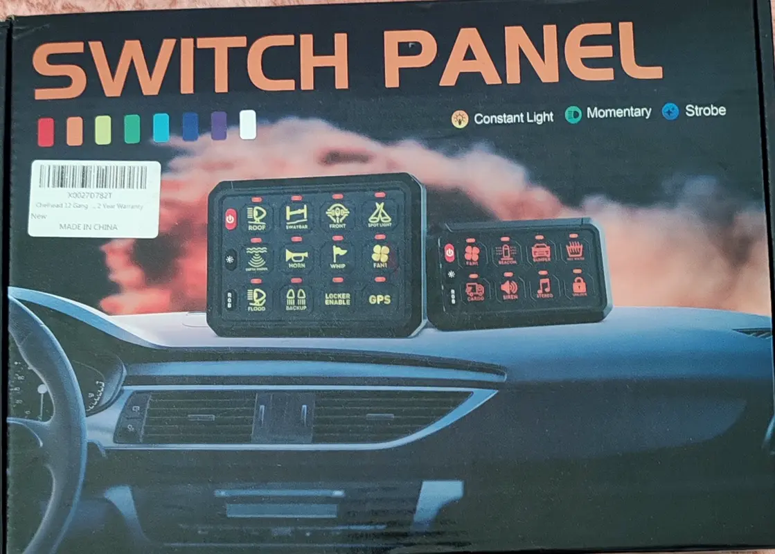 I'm selling a brand new, never-used 12V multi-function car switch panel still in its original box. It's a compact control panel with multiple illuminated LED icons for functions like lights, horn, GPS, and other accessories. The panel supports different indicator modes (constant light, momentary, and strobe) and is designed for easy dashboard mounting in cars or boats. No warranty is included. I haven't installed or opened it, so it's in flawless, unused condition.