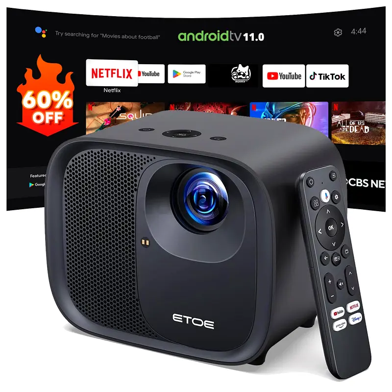 I'm excited to offer my ETOE Android TV Projector with Remote Control, which is in flawless condition and has never been used. This projector is perfect for movie nights, gaming sessions, or presentations, providing stunning picture quality with vibrant colors. It features the latest Android TV 11.0, allowing you to access popular streaming services like Netflix, YouTube, and TikTok with ease. The compact design makes it convenient to set up in any room, and the included remote control adds to the ease of operation. Whether you're transforming your living room into a mini cinema or enjoying a casual night in, this projector is an excellent choice.