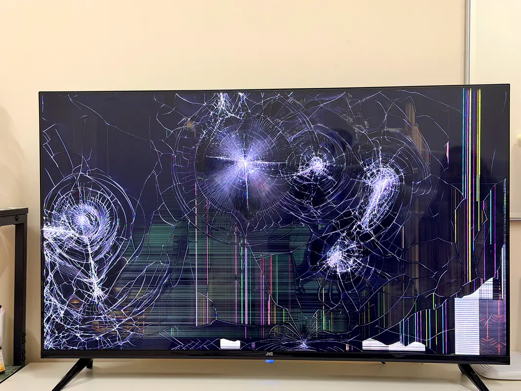 Up for sale is a 43-inch JVC smart Android LED TV, which unfortunately has a damaged screen. This TV is perfect for parts or for someone looking to repair it. The resolution is UHD 4K, providing high picture quality, but currently, the screen is not functional due to cracks. It was lightly used and is in flawless condition otherwise. The TV is a table mount type and does not come with a warranty.