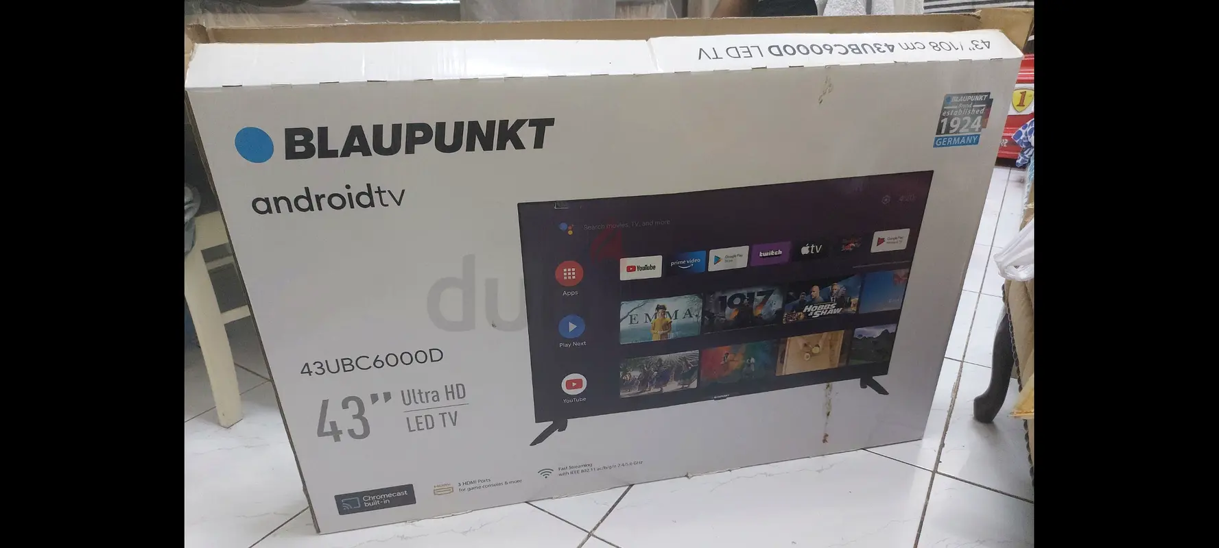 Blaupunkt UHD LED android TV 43" bought in 2025 screen is cracked TV box is also available has HDMI and usb ports size is 43" (108cm) 160 aed final price