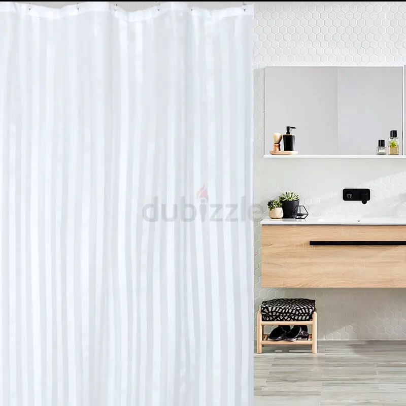 I'm selling 150 pcs white striped shower curtain brand new. It's in excellent condition with light usage and no stains or tears. The curtain has subtle vertical stripes for a clean, modern look and comes ready to hang with reinforced holes at the top (rings not included). It worked well in my bathroom and kept water contained without any issues. Selling because I'm updating the bathroom decor.