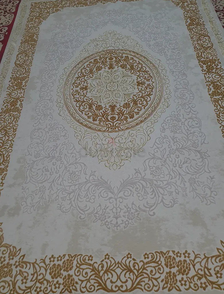 I am selling this elegant decorative area rug that has never been used and is in flawless condition. It's beautifully designed with an intricate rectangular pattern in a soft beige color that will complement any interior decor.this rug measures 200 x 300 cm, making it perfect for adding a touch of sophistication to your living space. It's perfect for anyone looking to enhance their home with a modern and stylish piece.