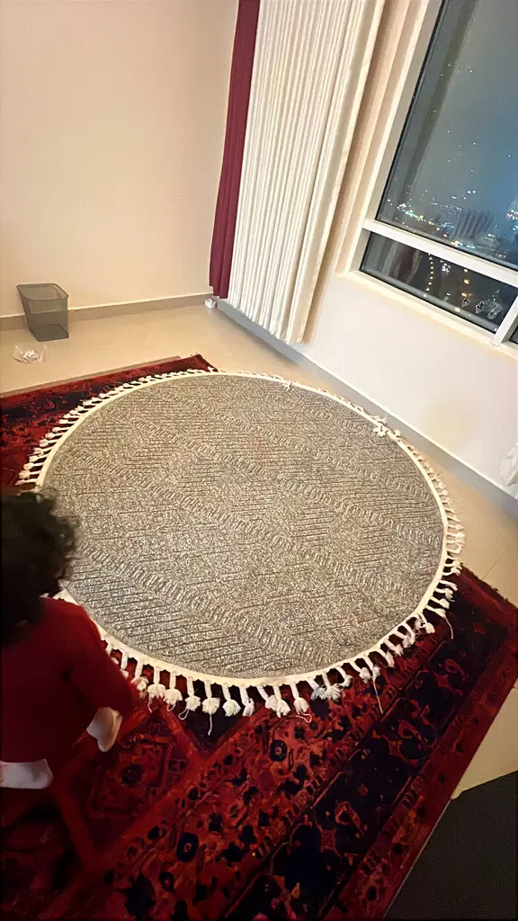 I’m selling a round, handwoven grey cotton rug with tassels. I’ve had it for about 1–2 years and it’s in good condition with normal signs of use — a few minor fuzzes but no stains or holes. It’s lightweight and lies flat, suitable for living rooms or bedrooms, and the neutral grey with fringe fits modern or abstract décor.