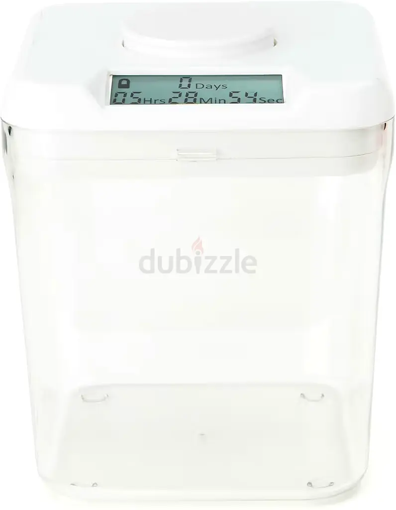 The product is built from thick, sturdy, high quality, BPA free materials. Container walls are very rigid and 3X thicker than typical containers. A large, high contrast display shows the amount of time remaining. The locking mechanism is driven by a high quality motor.