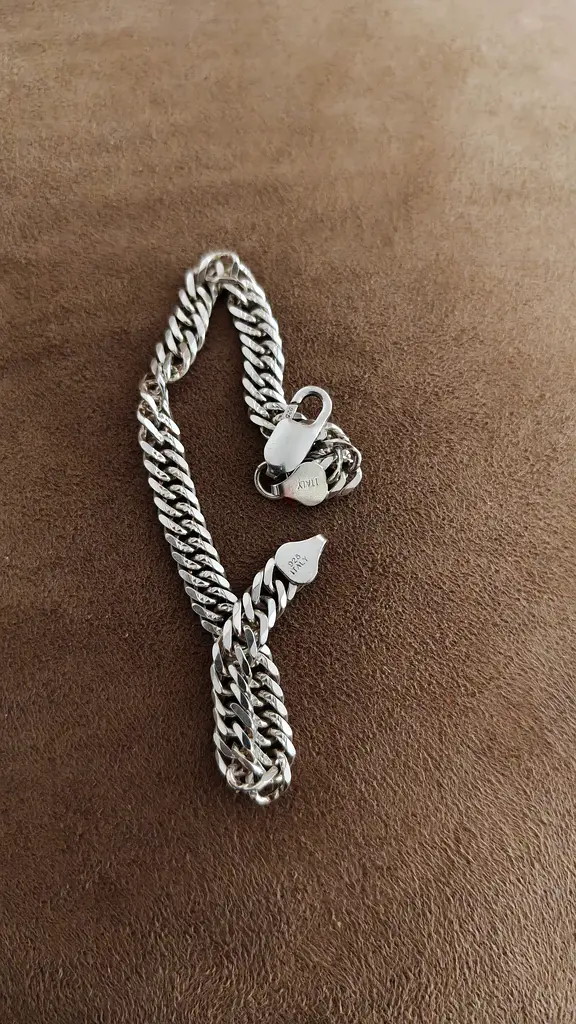 I’m selling my sterling silver Cuban link chain bracelet,It’s a heavy,well-made piece with a secure lobster clasp and hallmarked 925. The finish is bright silver with minimal surface wear and no noticeable dents or bends. Fits a standard unisex wrist; weight gives it a substantial feel without being uncomfortable. I’ve kept it in excellent condition and it’s ready to wear.
