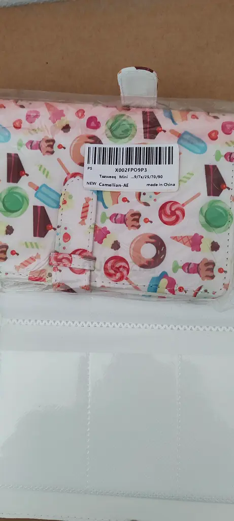 I’m selling a brand new, never-used sweets-themed card/photo holder album. It has a cute printed cover with donuts, lollipops, cupcakes and other candy illustrations, and a snap closure to keep contents secure. Inside are clear plastic pockets arranged to hold cards, photos or small collectibles. The item is flawless and unused, still in original packaging.