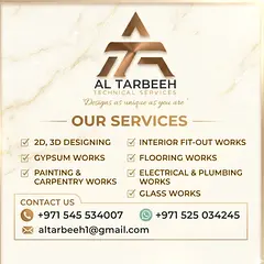 تجديد كامل للشقة, تشطيب الحمام, دهان الجدران الخارجية, السقف المعلق, تجديد كامل للفيلا, العزل المائي / التصليح / تحضير الجدران, السقف الجبسي, أعمال الزجاج, دهان الجدران الداخلية, تبطين الأرضيات والجدران, الجدران الفاصلة الجبسية, تثبيت الأرضيات