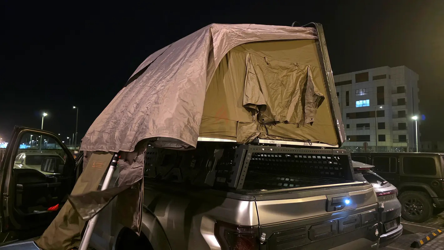 The tent is automatic, waterproof, has inside LEDs and outside that works with power bank.