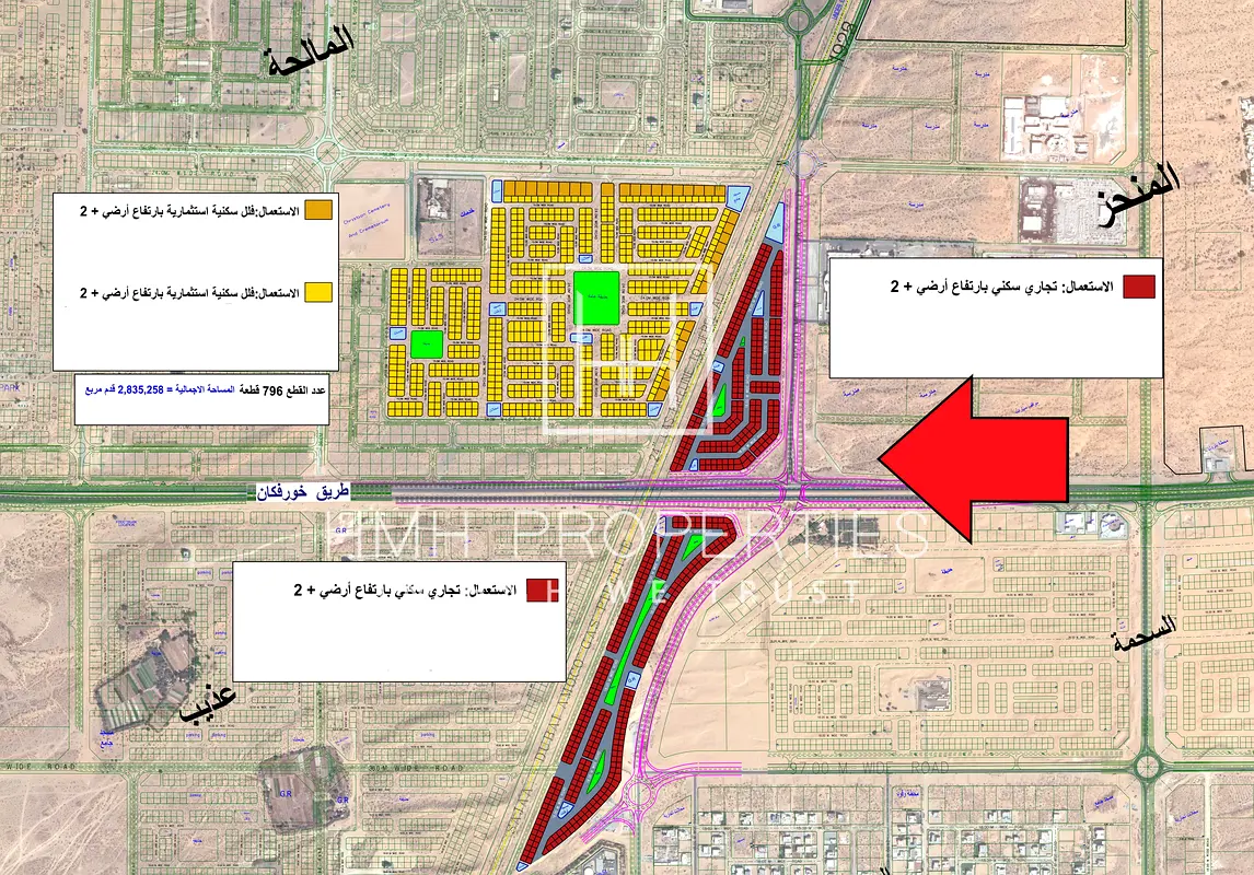 فرصة استثمارية مميزة لامتلاك أرض تجارية حصرية (إعادة بيع) في منطقة الرويضات – الملحه، الشارقة، تقع في موقع استراتيجي الذي يشهد نمواً متسارعاً.