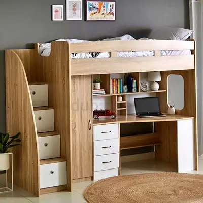 Bunk Bed with Built-in Desk, Storage Drawers and Stairs