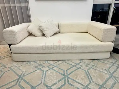 Light beige L-shaped sofa set with ottoman - Good condition, 500 AED
