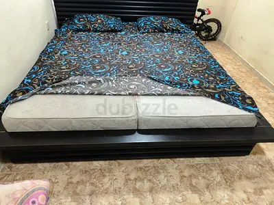 Single Wooden Bed with pullover bed and two mattress - pink white , Good Condition