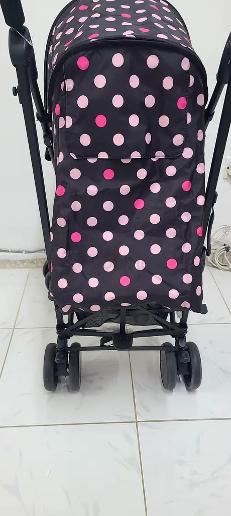 I'm selling a stylish dot-patterned stroller that's practically brand new! This stroller has only been used for 5 days and is in flawless condition. It's perfect for your little one under 1 year old and offers a range of fantastic features. The lightweight frame makes it easy to maneuver, while the compact fold ensures convenient storage. The adjustable handlebar allows for comfortable pushing, and the ventilated seat keeps your baby comfortable during strolls. Additionally, it comes equipped with a storage basket for all your essentials and cup holders to keep your drinks at hand. This is a great deal for anyone looking for a reliable stroller.