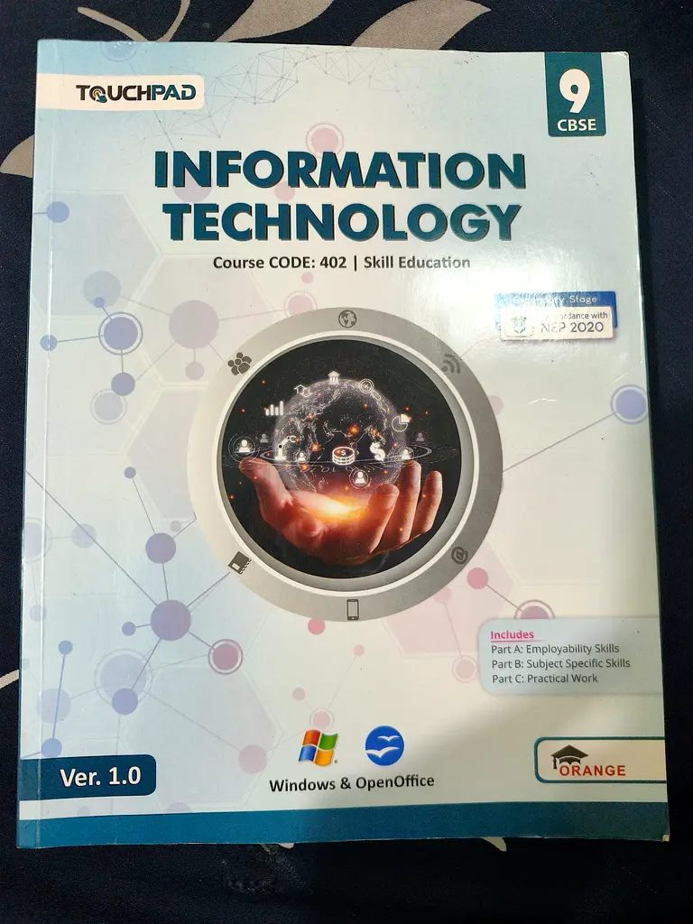 I am selling a never-used Information Technology textbook for secondary school. This is the Touchpad edition, course code 402 for skill education, and it’s in flawless condition. The book includes sections on employability skills, subject-specific skills, and practical work, making it a great resource for students. It's a paperback edition and has been kept in perfect shape.