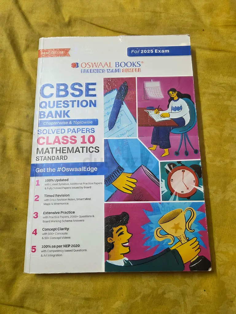 I'm selling a CBSE Oswal Maths Guide for Class 10 Mathematics. This textbook is designed to help students with their math studies, featuring solved question papers and clear explanations to enhance understanding. It's in flawless condition, having been used lightly. Ideal for secondary school students preparing for their exams.