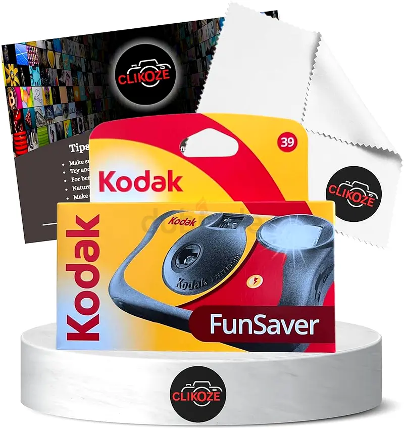 Disposable Camera Bundle with Kodak Funsaver 39 Exposure 35mm Film Single Use Camera and Photography Tips Card and Lens Cleaning Cloth