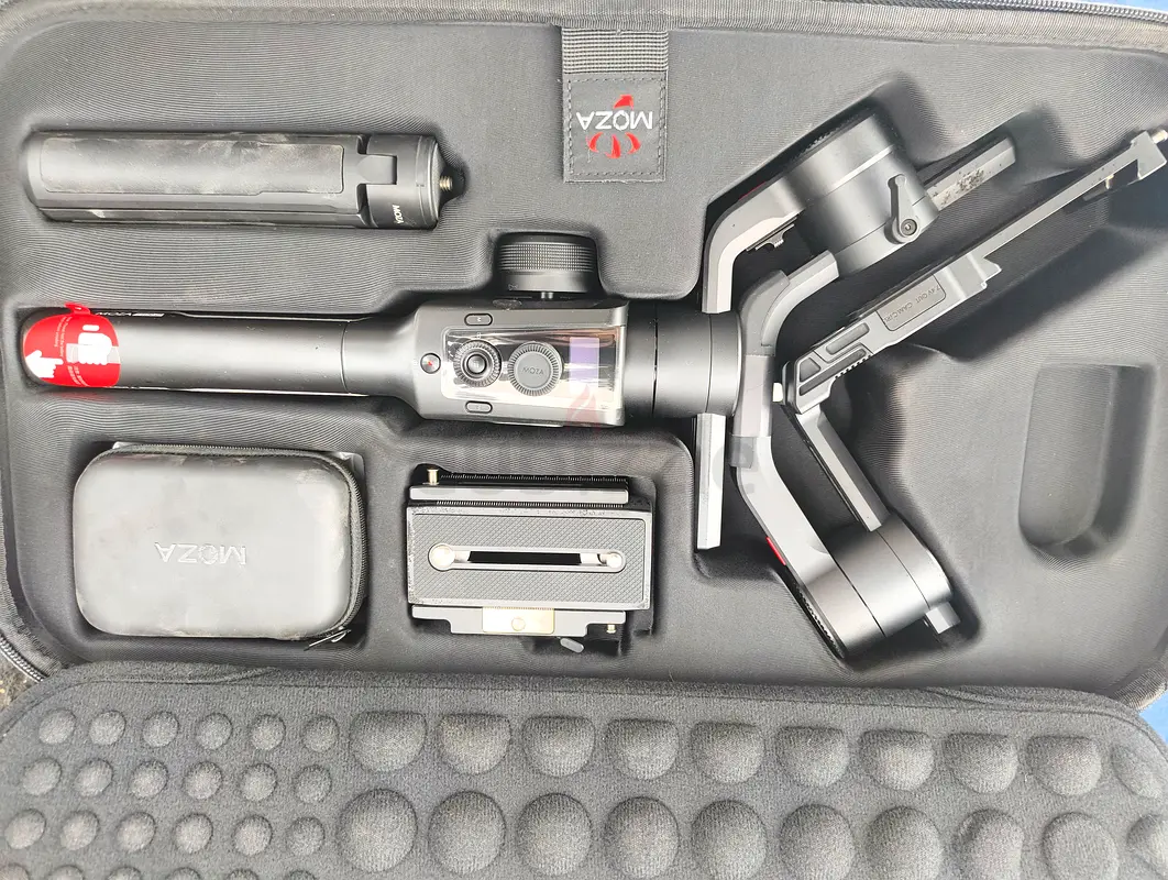 I am selling a Moza Gimbal Stabilizer along with all its original accessories. This product is brand new and has never been used. It is in excellent condition and ready for someone who wants to capture smooth and professional-looking video footage. The gimbal comes with a carrying case, which makes it easy to transport. It's perfect for videography enthusiasts or anyone looking to improve their filming stability.