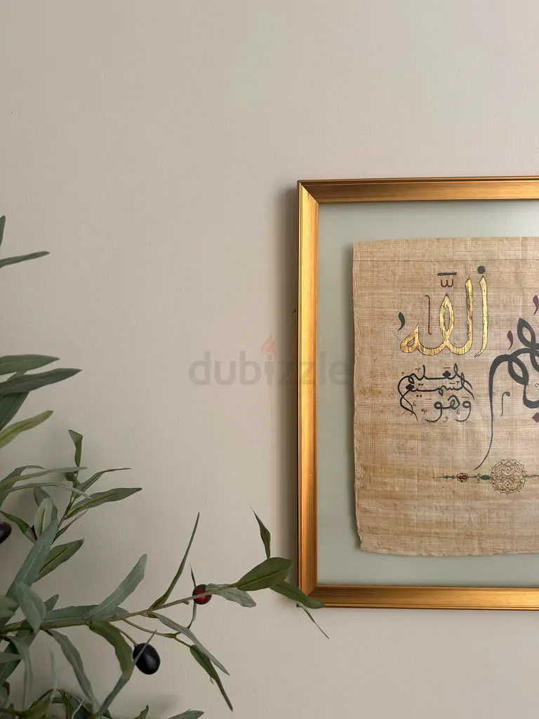 Authentic Arabic calligraphy artwork, hand-painted on natural papyrus (Papyrus paper) and professionally framed with a high-quality gold frame.