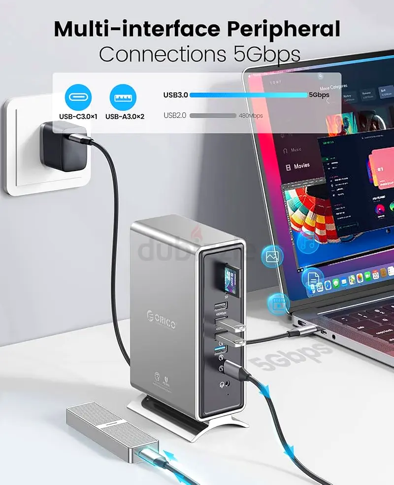 PD 100W + Gigabit Ethernet Port: ORICO Triple Display Docking with100W PD power supply to ensure your power supply, and you don't have to worry about insufficient power when using multiple ports at the same time. This product is equipped with an RJ45 Gigabit Ethernet port, which can help your device directly connected to the local area network, and the highest network speed can reach 1000Mbps. You don't have to worry about the inconvenience of internet speed to your work.