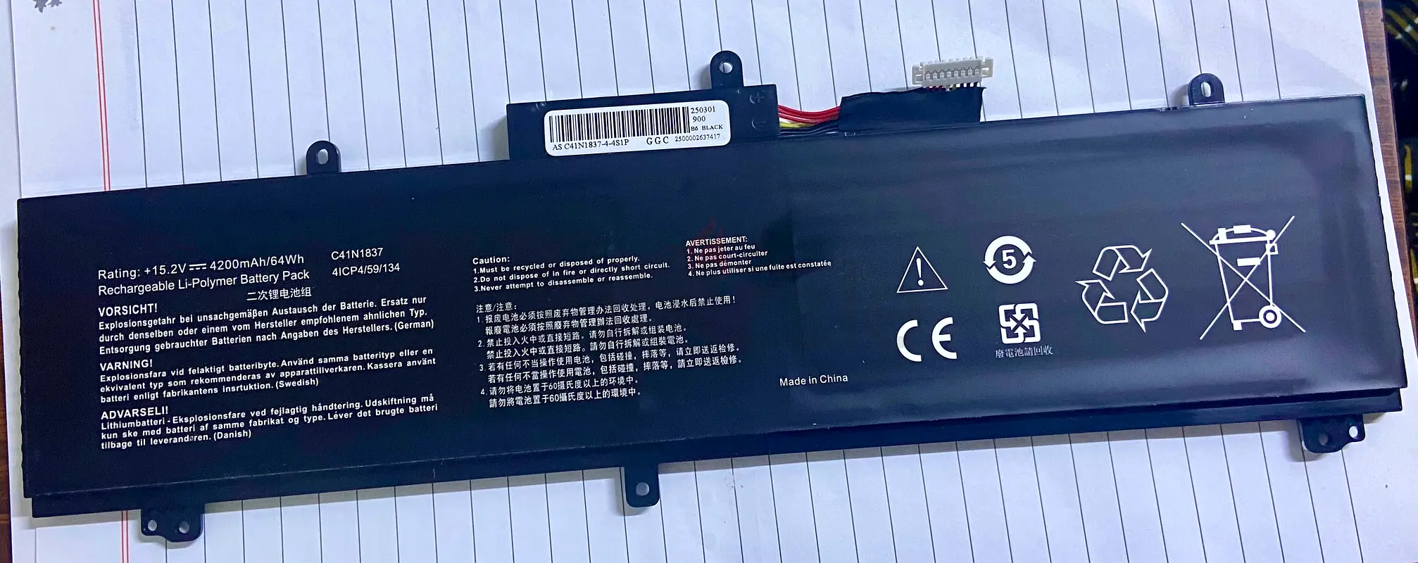 Selling a brand new ASUS laptop battery at half price! This high-performance battery, model AS C41N1837, provides 15.2V and 4200mAh of power. It's the perfect replacement to keep your laptop running smoothly. The condition is flawless as it has never been used, and there is no warranty. Don't miss out on this fantastic deal!