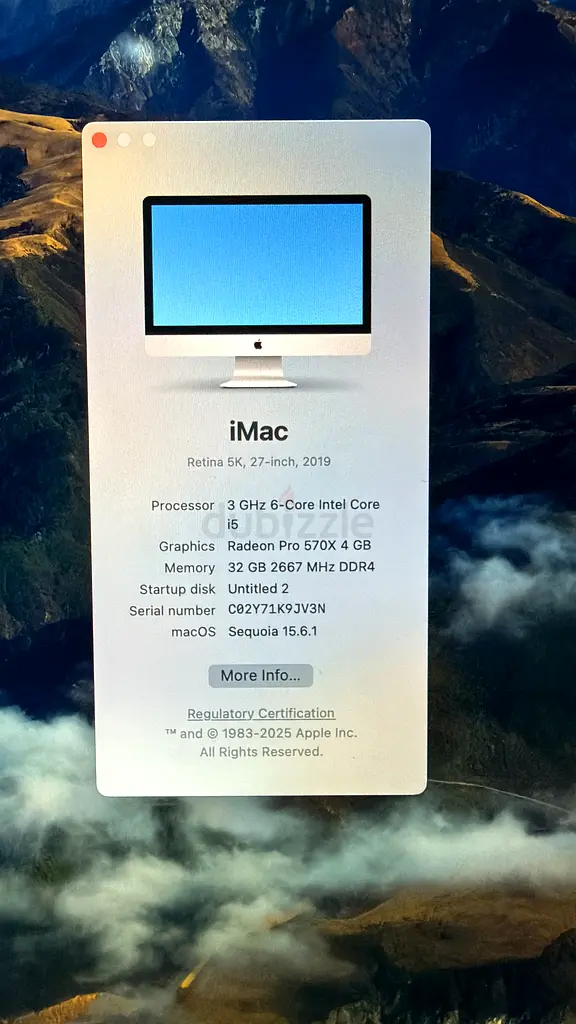 I'm selling my Apple iMac 27" (2019), which has been a reliable and high-performance computer for me. It's in excellent condition and has seen normal usage. This powerful iMac features a stunning 5K display with a resolution of 3840 x 2160 pixels, perfect for graphics, videos, and general use. It's powered by a 3.6 GHz 6-Core Intel Core i7 processor, which provides plenty of processing power for any tasks you may have. Please note that there is no warranty on it, but it's well-maintained and functions perfectly.