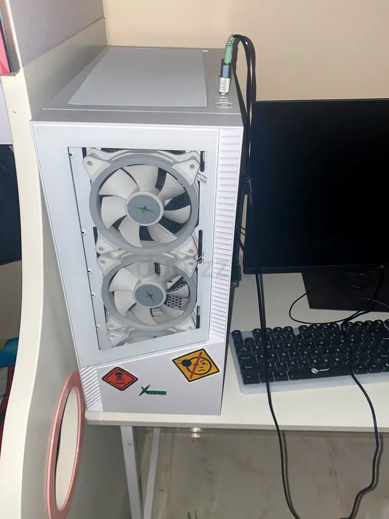 I'm selling my white custom desktop PC tower with dual front fans. It's about 1-6 months old, used lightly and is in excellent condition. It's a custom build (brand: Other) running an Intel Core i7700 processor, and Gtx 1070with 512 GB of memory/RAM and a display resolution of 2880 x 1920 (HD). There is no warranty remaining. Listing is under Computers & Networking > Desktop Computers. The case and front fans are shown in the photos and are in great shape.