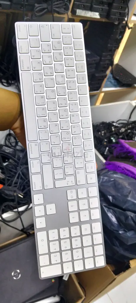 I'm selling my slim white Apple wireless-style keyboard with a full numeric keypad. I've used it lightly for about 1-2 years and it's in good working condition — keys are clean and responsive. It still has warranty coverage. I'm selling because I no longer need it.