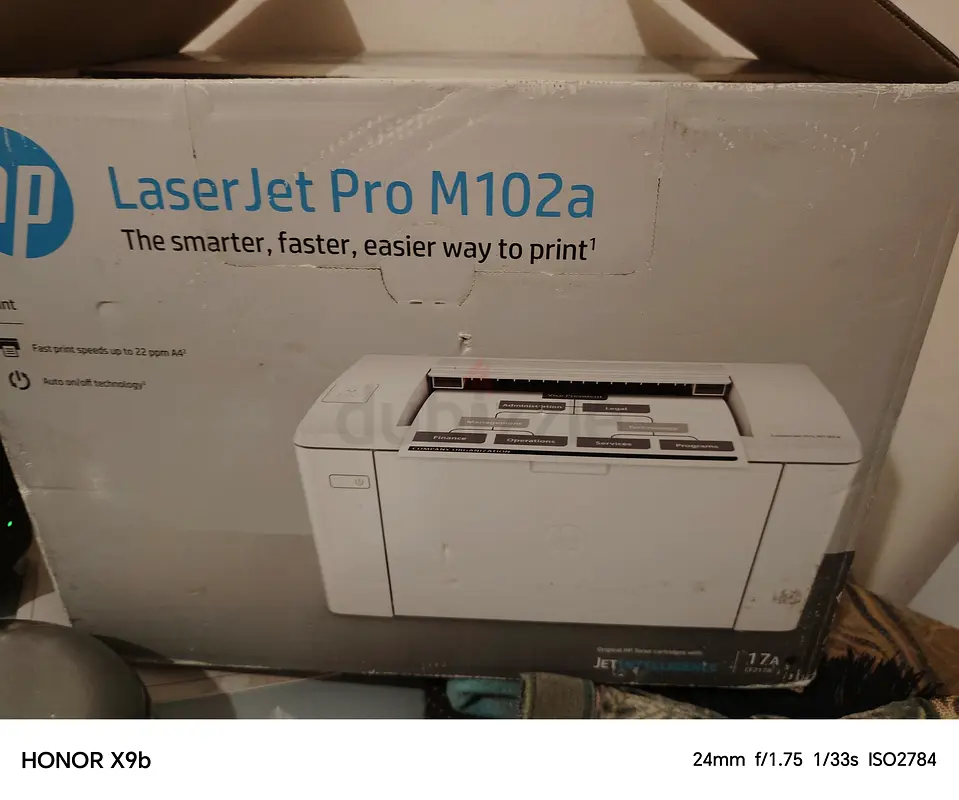 I am selling my HP LaserJet Pro M102a Printer, which is in excellent condition and has never been used. This compact printer is perfect for any home or office, delivering sharp and professional-quality prints efficiently. It's designed to handle a variety of printing tasks with speed and reliability, making it a great addition to your workspace. Since it's still in its original packaging, you're getting a brand-new product.
