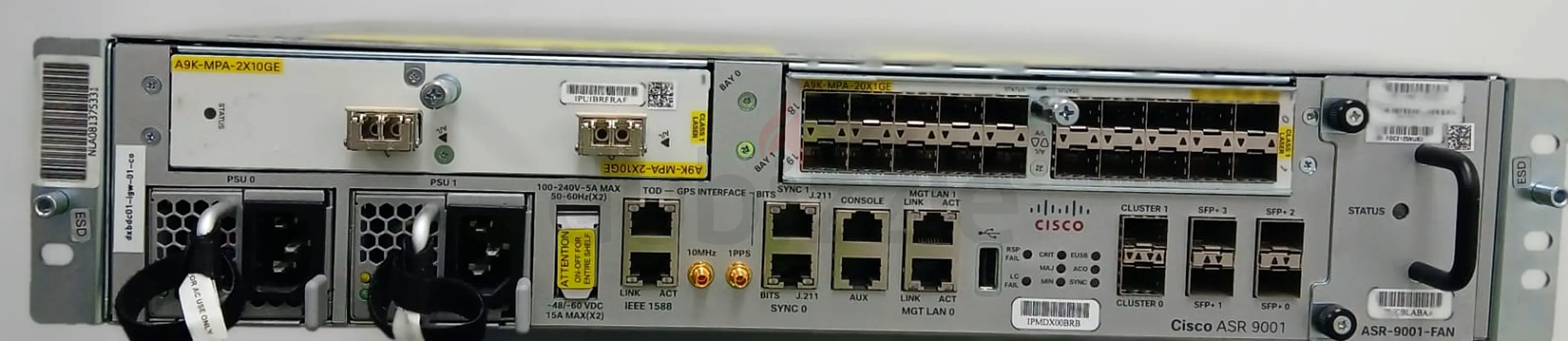 For sale: Cisco ASR-9001-with dual AC power, equipped with 1× A9K-2x10GE and 1× A9K-20x1GE.
