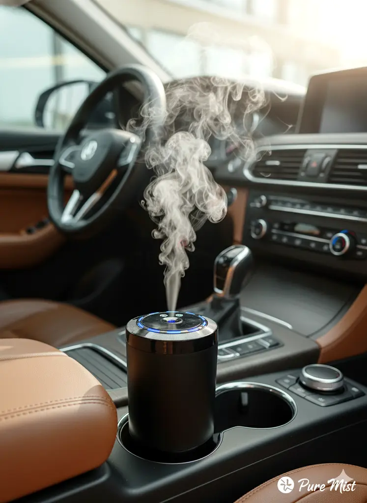A portable electronic aroma diffuser suitable for cars, offices, and bedrooms. It comes with 3 long-lasting fragrance bottles and a large rechargeable battery that lasts for days.