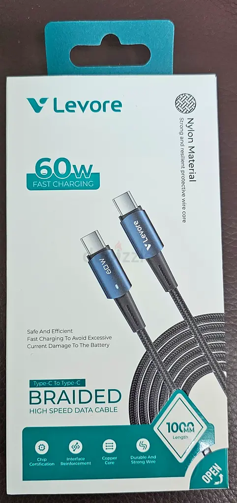 I am selling a brand new Levore Braided USB-C Fast Charging Cable. This cable is designed for high-speed data transfer and fast charging up to 60W, making it perfect for your devices. It has a durable braided design for added strength and longevity. I’ve never used it, so it's in flawless condition. There’s no warranty included, but with its robust build, it should serve you well for a long time.