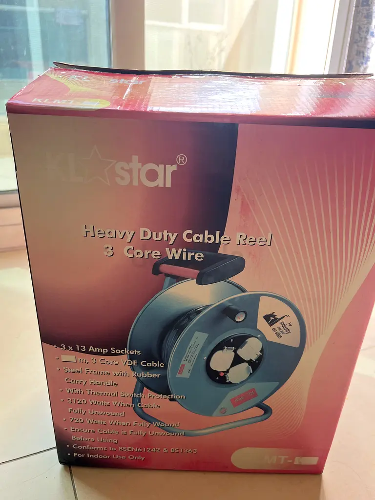 This is a brand new Heavy Duty Cable Reel featuring 3 core wire. It is in flawless condition and has only been used once. The cable reel is designed for safety and convenience, ensuring that your wires stay organized and easily accessible. It’s perfect for home or professional use, making it a reliable choice for your electrical needs.