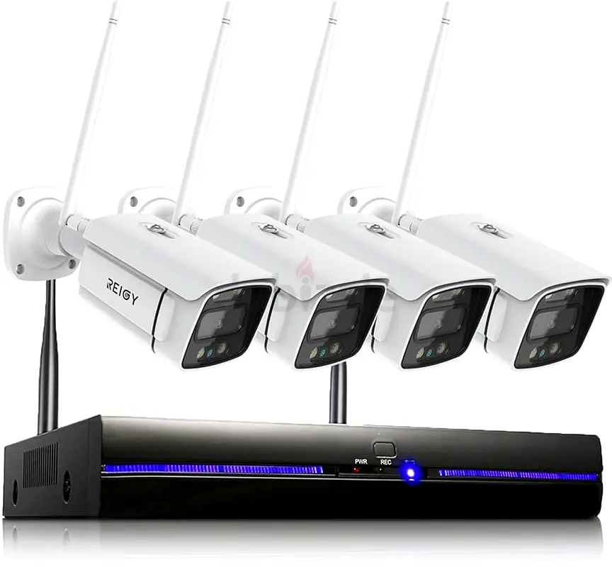 REIGY 3MP WIFI CCTV Camera System with Floodlight, Outdoor Security Cameras Set 8CH NVR + 4x 1296P IP Cam With 2-Way Audio, Remote View, Color Night Vision, Motion Detection Without HDD
