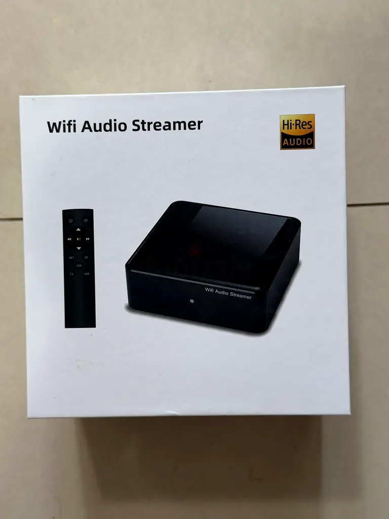 Brand new with box WiFi audio streamer. This Streaming Receiver that is able to turn your active speakers, soundbars and home theater speakers into a wireless streaming music system. It supports WiFi and BT wireless connection, also supports AUX, ARC, USB DISK input, and supports fiber and LINE two output modes, supports Airplay and DLNA protocol