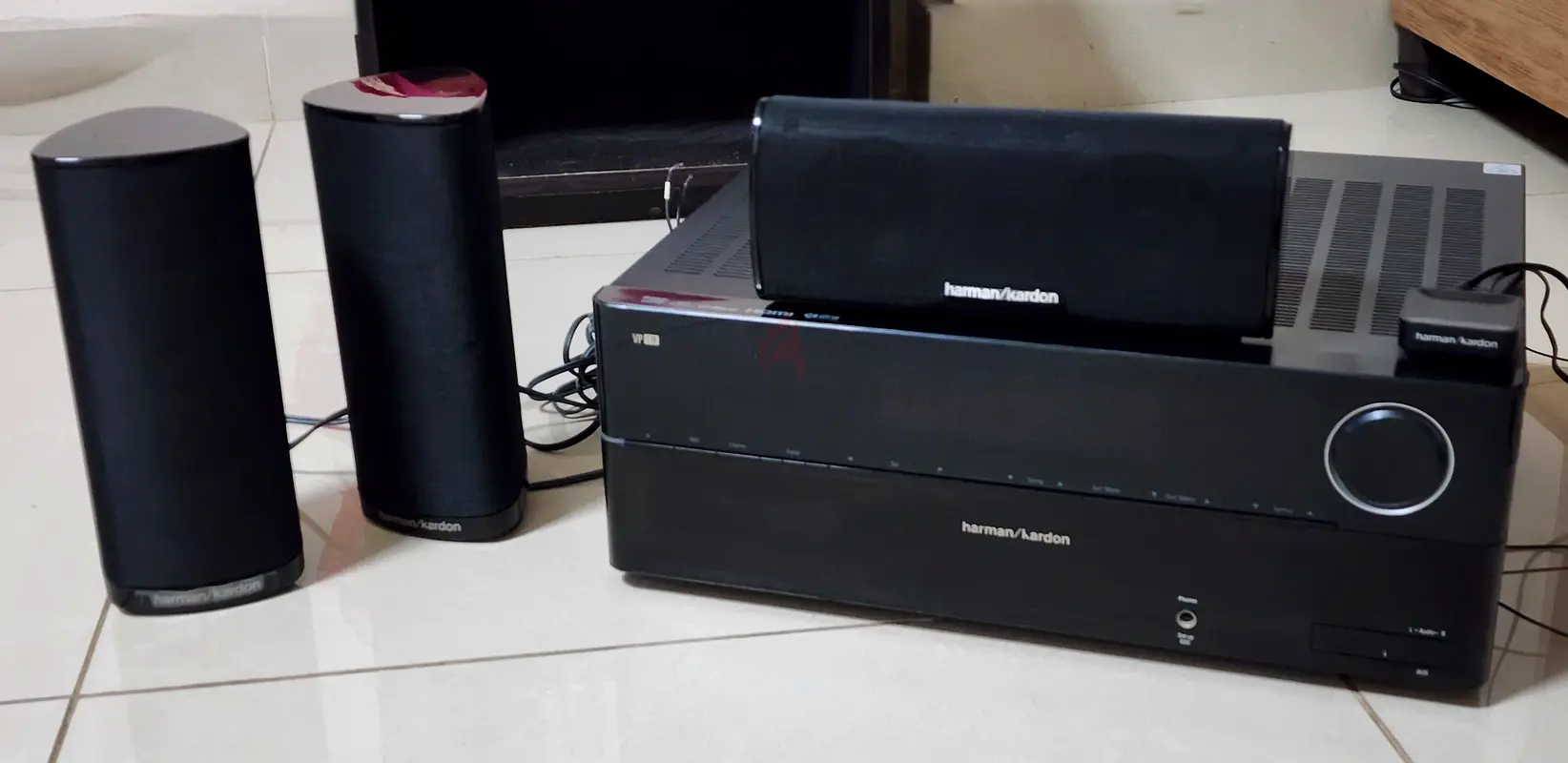 I’m selling my Harman/Kardon home audio receiver with a set of surround speakers. It’s about 5–10 years old and has been used for normal daily listening. The unit is in average cosmetic condition with some light scuffs and signs of use. The receiver includes the main amp, a center speaker and two slim satellite speakers as shown. There is no warranty and I don’t have original boxes.