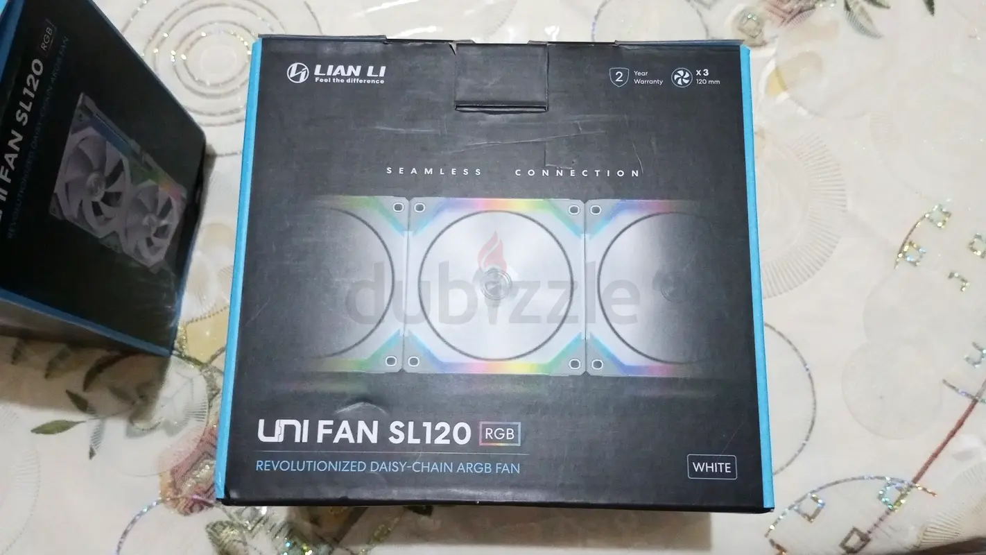 I'm selling a Lian Li UNI FAN SL120 RGB Fan, which is still brand new and in flawless condition. This fan has never been used and comes with RGB lighting to enhance your build's aesthetics. It features a seamless connection design for easy daisy-chaining with multiple fans. No warranty included.