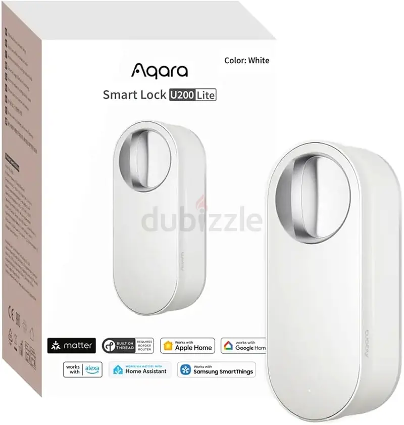 Aqara Smart Lock U200 Lite, Matter Over Thread, Quiet Mode, Auto Lock, Remote Access, Rechargeable Battery, Fits Euro Profile Cylinder, Supports Homekit, Alexa, Google Home, Home Assistant, White