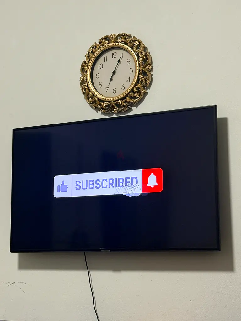 I'm selling my Samsung 40-inch (fits 42-55" range) UHD 4K flat LED TV that I've had for about 1-2 years. It's wall mounted and has been gently used with normal day-to-day usage. The screen and picture quality are good, and the TV powers on and displays as expected (shown mounted in photos). There is no remaining warranty and I'm selling because I am upgrading. Comes as-is with the wall mount still attached; power cable visible in photos.