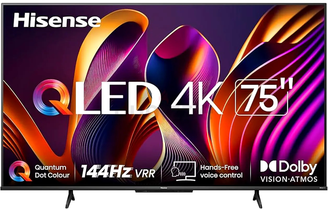 I'm selling my Hisense 75" QLED 4K TV. I bought it about 1–2 years ago and it's been lightly used in a smoke-free, pet-free home. The TV is in flawless condition with no scratches or dead pixels. It supports UHD 4K resolution, 144Hz VRR for smoother motion, Dolby Vision and Dolby Atmos, and has hands-free voice control. Currently wall mounted (mount included) but I can remove it for pickup. No active warranty applies. Comes with original remote and power cable. Ideal if you want a large, high-quality smart TV for movies, gaming, or sports.