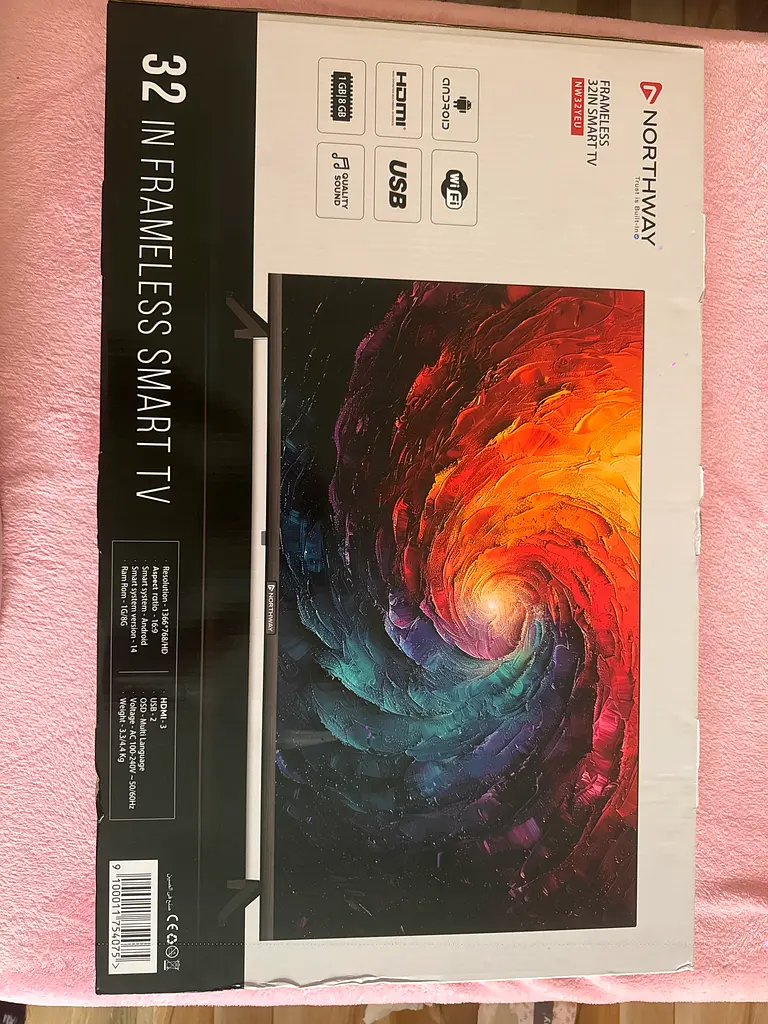 I'm letting go of my Northway 32" Frameless Smart TV, which is practically brand new. I've never used it, so it’s still in flawless condition and looks stunning in its sleek design. This TV offers an impressive HD-720i resolution and a 32-inch screen size, perfect for cozy viewing experiences in any room. It's wall mountable, making it easy to set up, and I’ve kept the warranty for peace of mind. Whether you're watching your favorite series or playing games, this smart TV enhances the experience with vivid colors and excellent picture quality. Don't miss out on this amazing deal!
