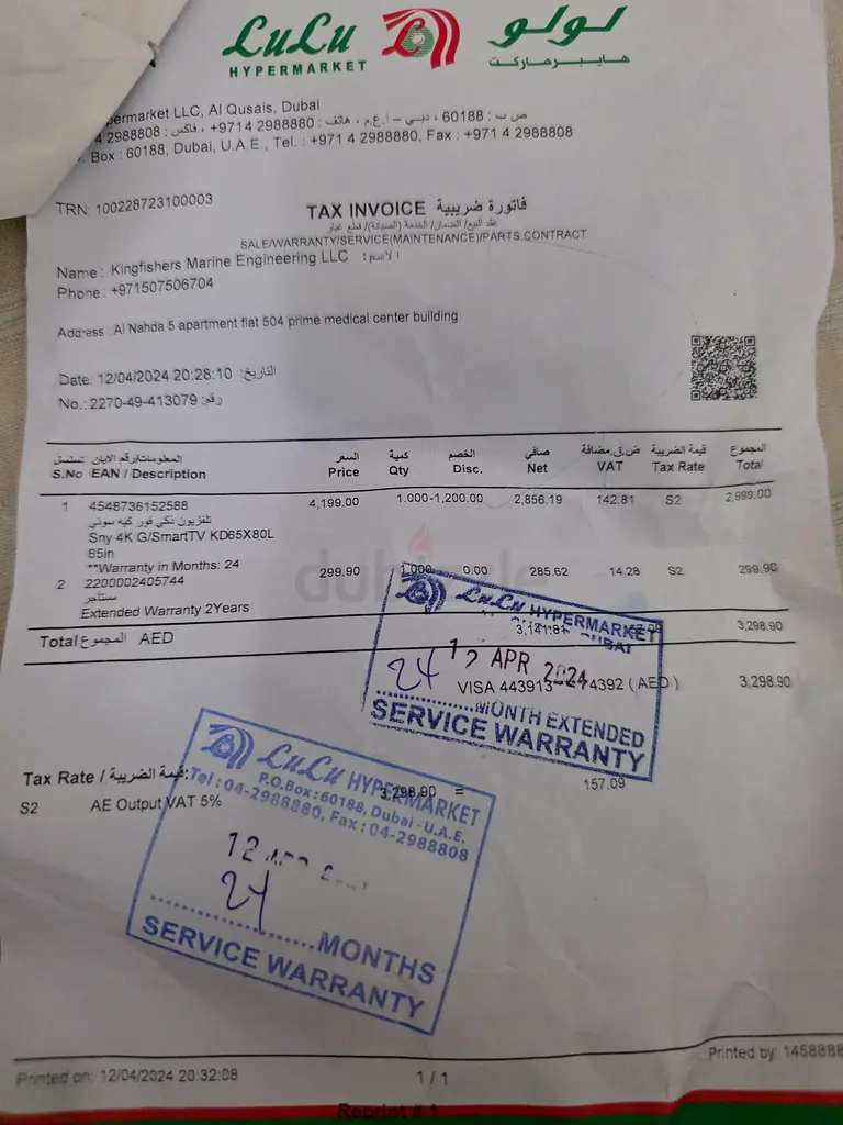 - Warranty: Yes (12 months)