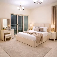 I’m selling a brand new, never-used queen-sized upholstered fabric bed in navy blue. The bed features a padded, vertically channel-tufted headboard and a fully upholstered base for a clean, modern look. It’s in flawless condition and has no signs of wear. The fabric is soft to the touch and the construction feels sturdy — suitable for a standard queen mattress (mattress not included). Ideal if you want a simple, contemporary bedroom centerpiece in a deep blue tone.